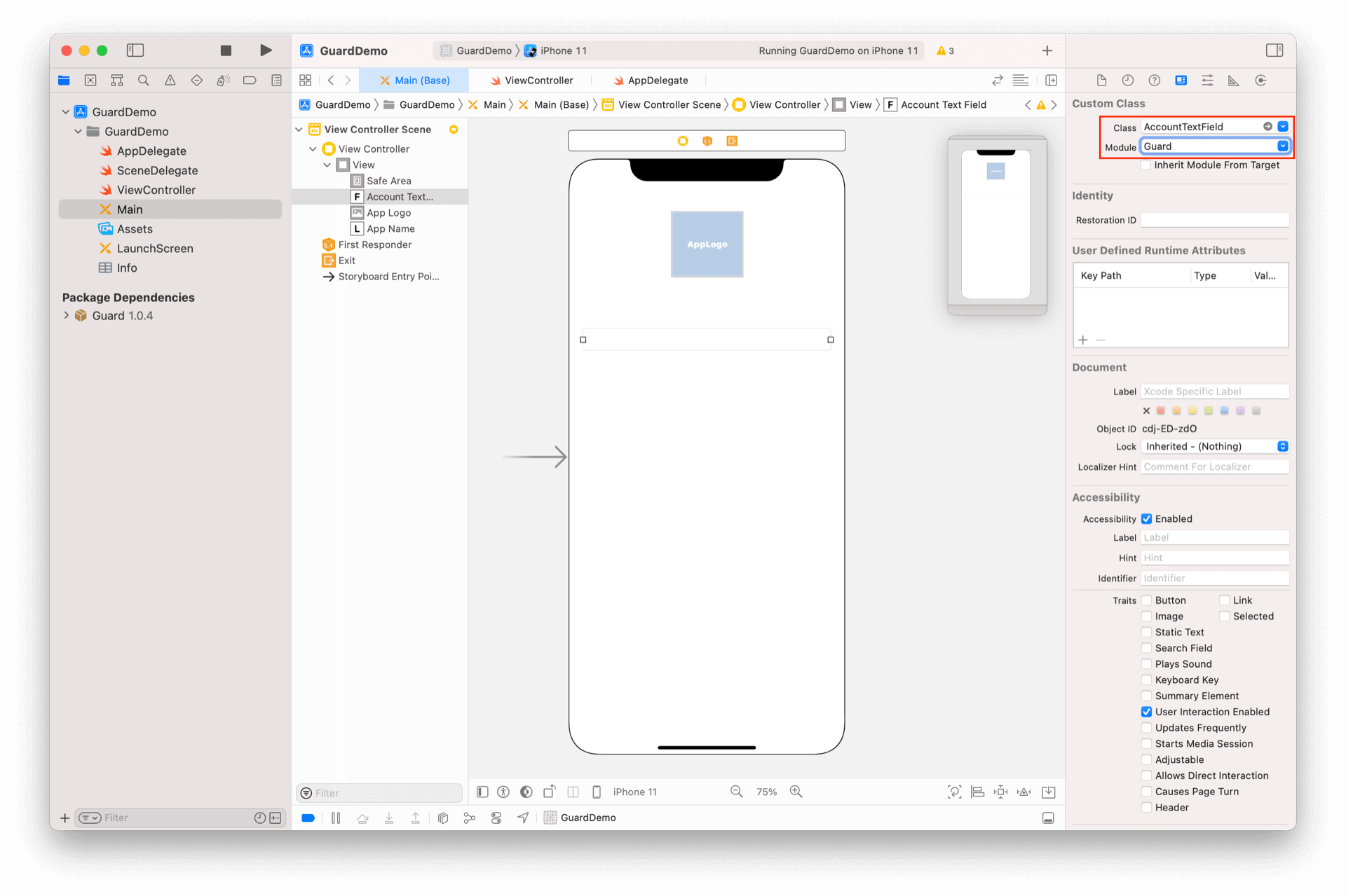 放置一个 TextField,将其类型改为 AccountTextField