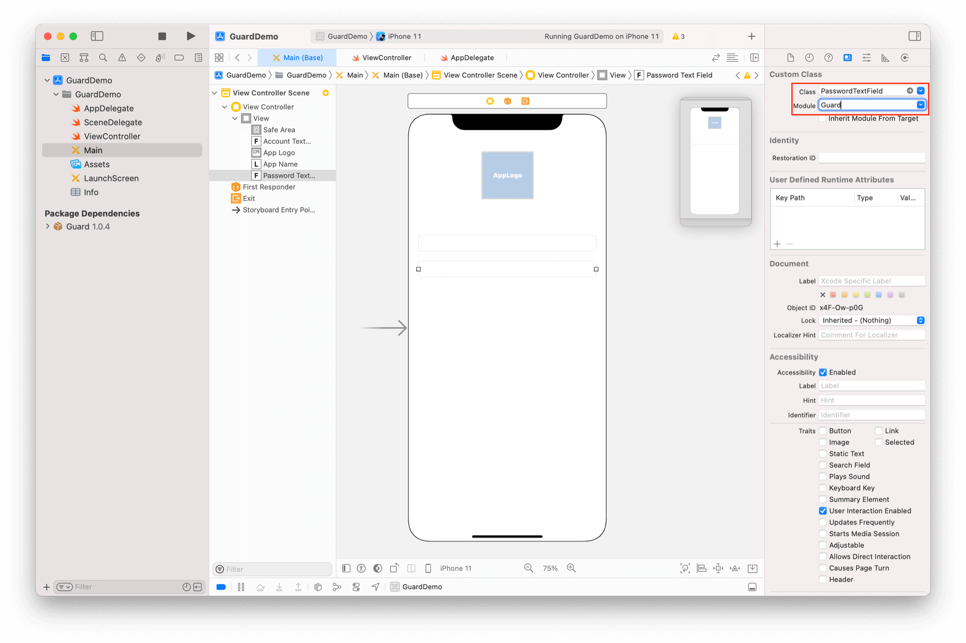 再放置一个 TextField,将其类型改为 PasswordTextField