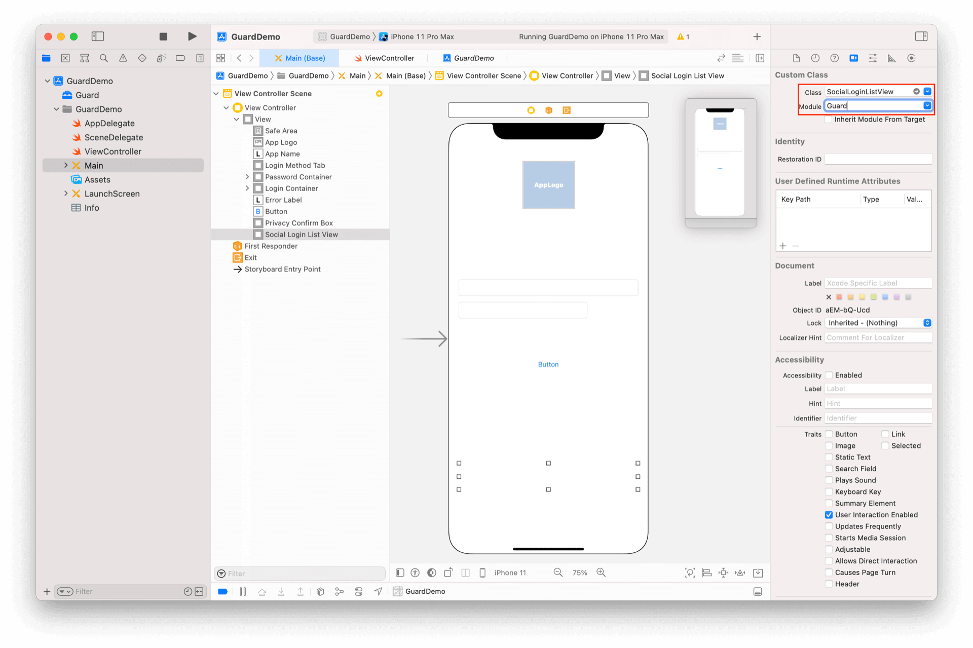 放置一个 UIView,将其类型改为 SocialLoginListView