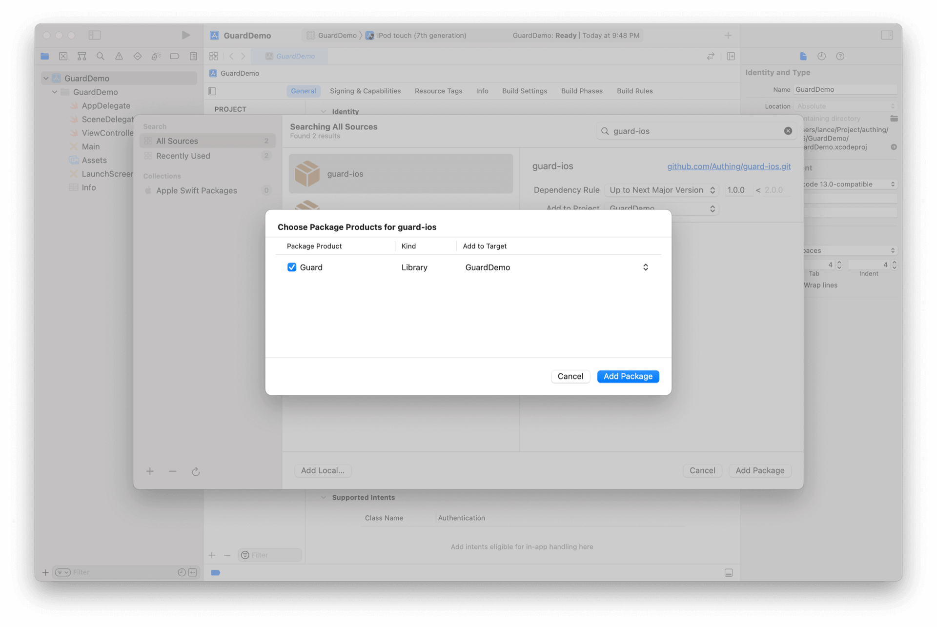 在 Swift Package 搜索栏输入:https://github.com/Authing/guard-ios