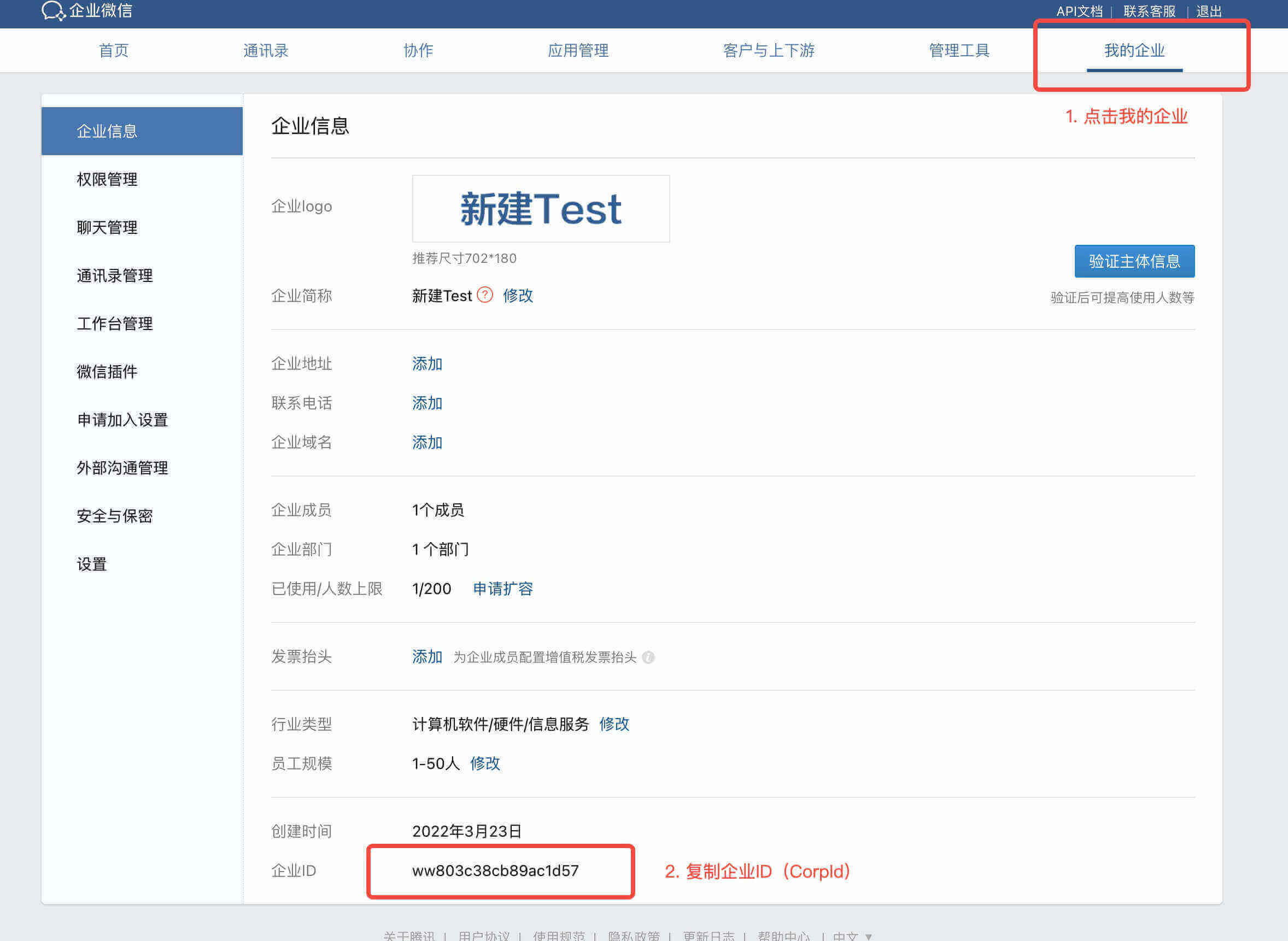 ¶ STEP 1:在企业微信管理后台 (opens new window)进行配置