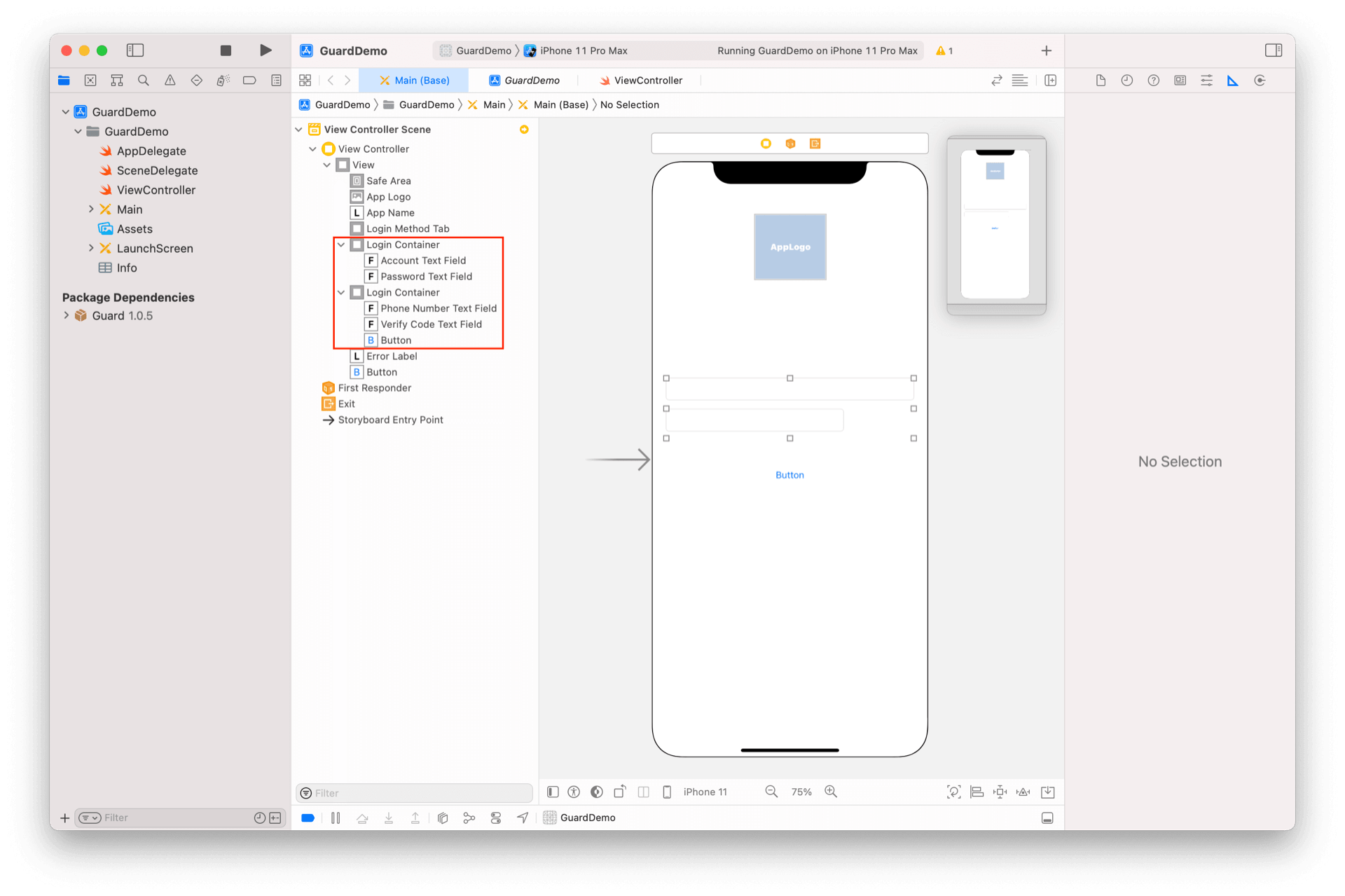 将 PhoneNumberTextField、VerifyCodeTextField、GetVerifyCodeButton 放到第二个 LoginContainer 里面。