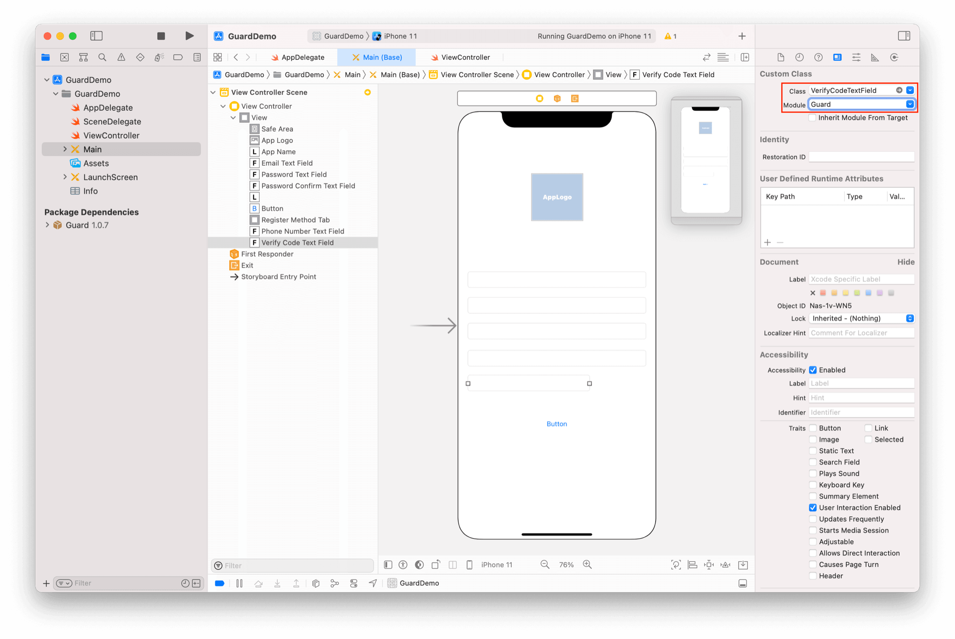 放置一个 TextField,将其类型改为 VerifyCodeTextField