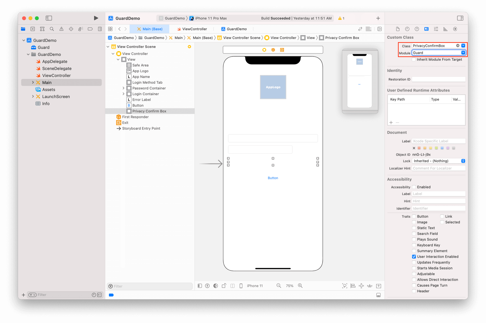 放置一个 UIView,将其类型改为 PrivacyConfirmBox