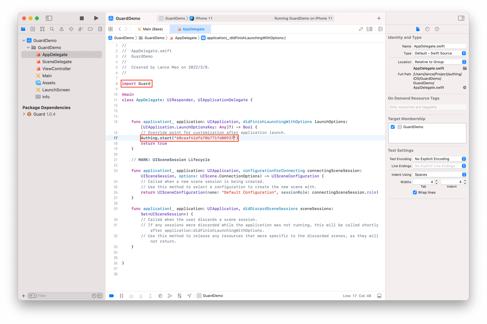 在 AppDelegate 或 SceneDelegate 中加入 import Guard。