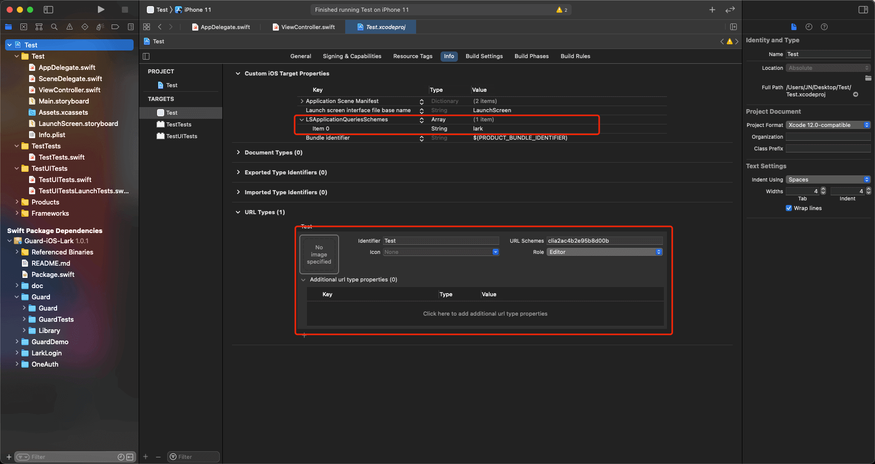 配置跳转 Scheme: LSApplicationQueriesSchemes Key 下添加 lark 。