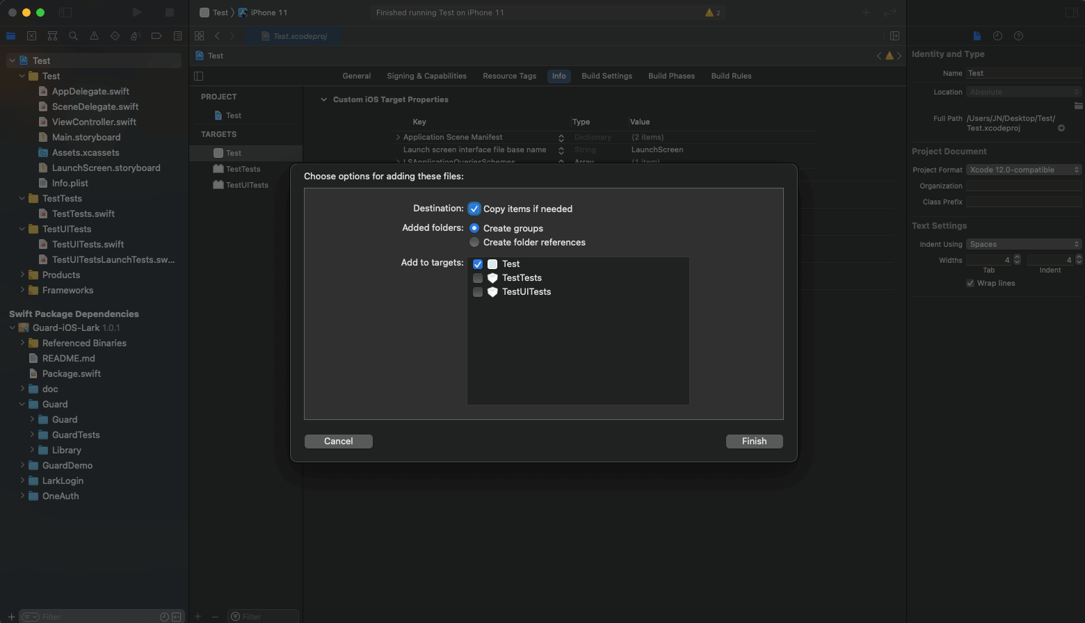- 在 AppDelegate 或 SceneDelegate 中加入 import Guard 和 import LarkLogin 。