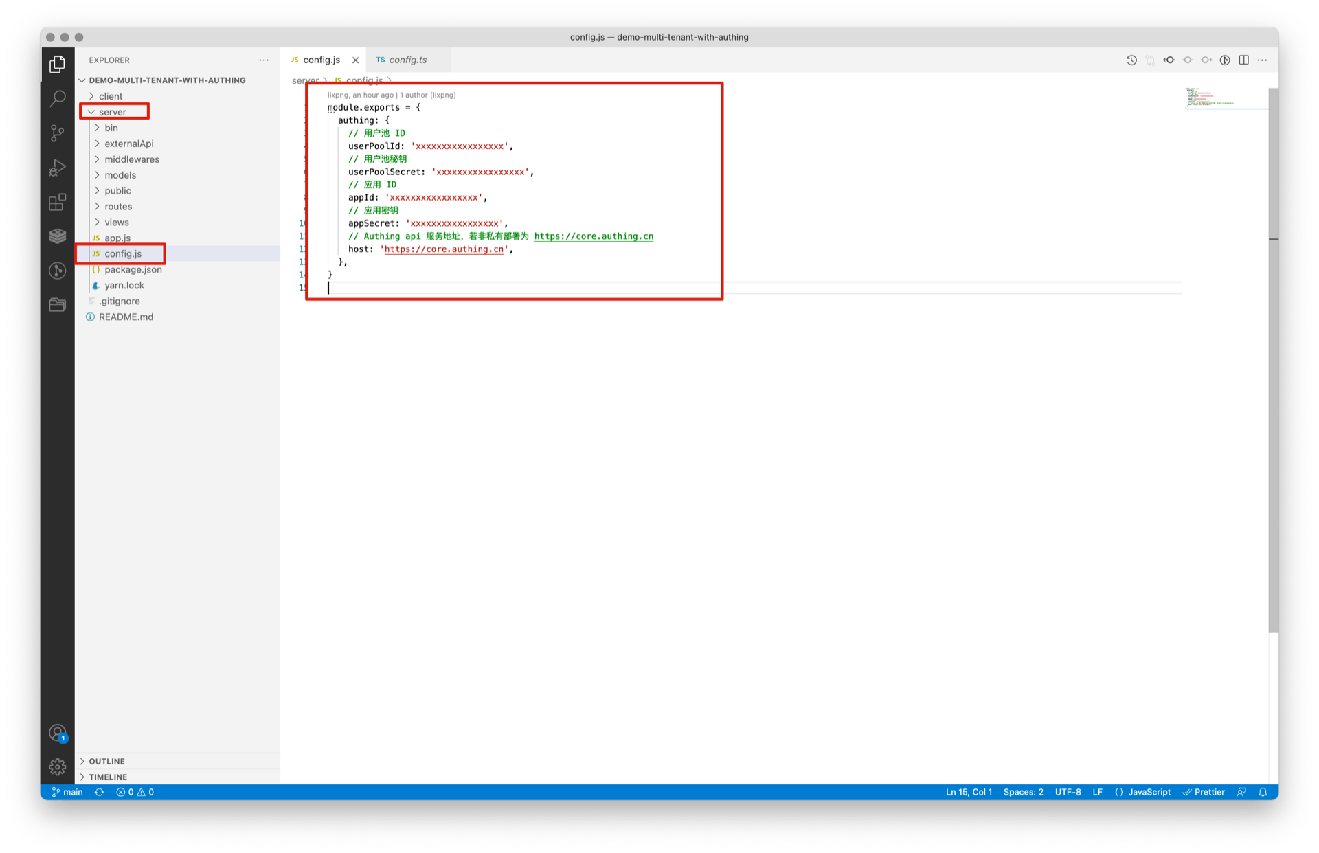 client和server分别执行npm install安装依赖。然后到 Authing 控制台新建一个应用,在应用详情中找到 租户配置,在 哪类用户可以访问此应用 选择 全部。