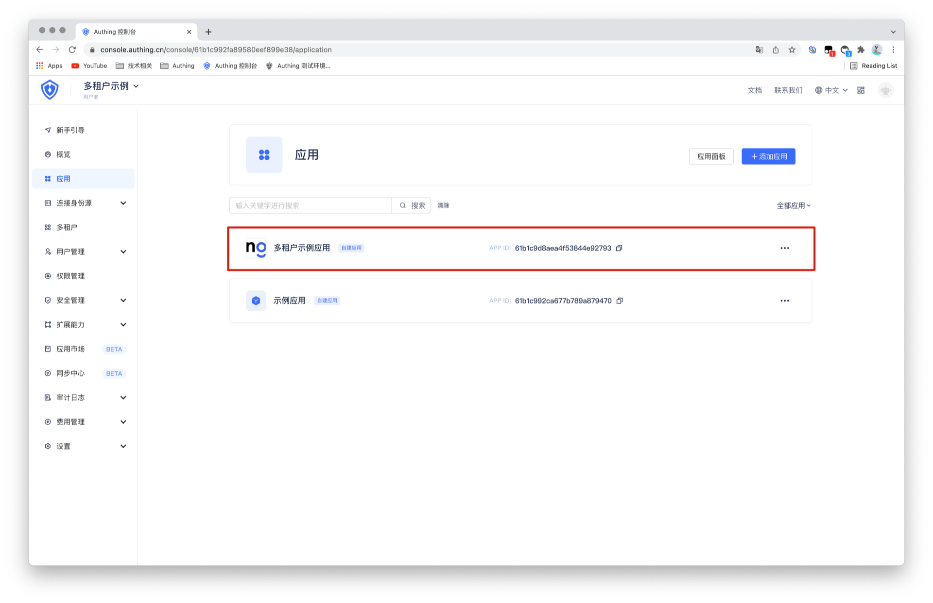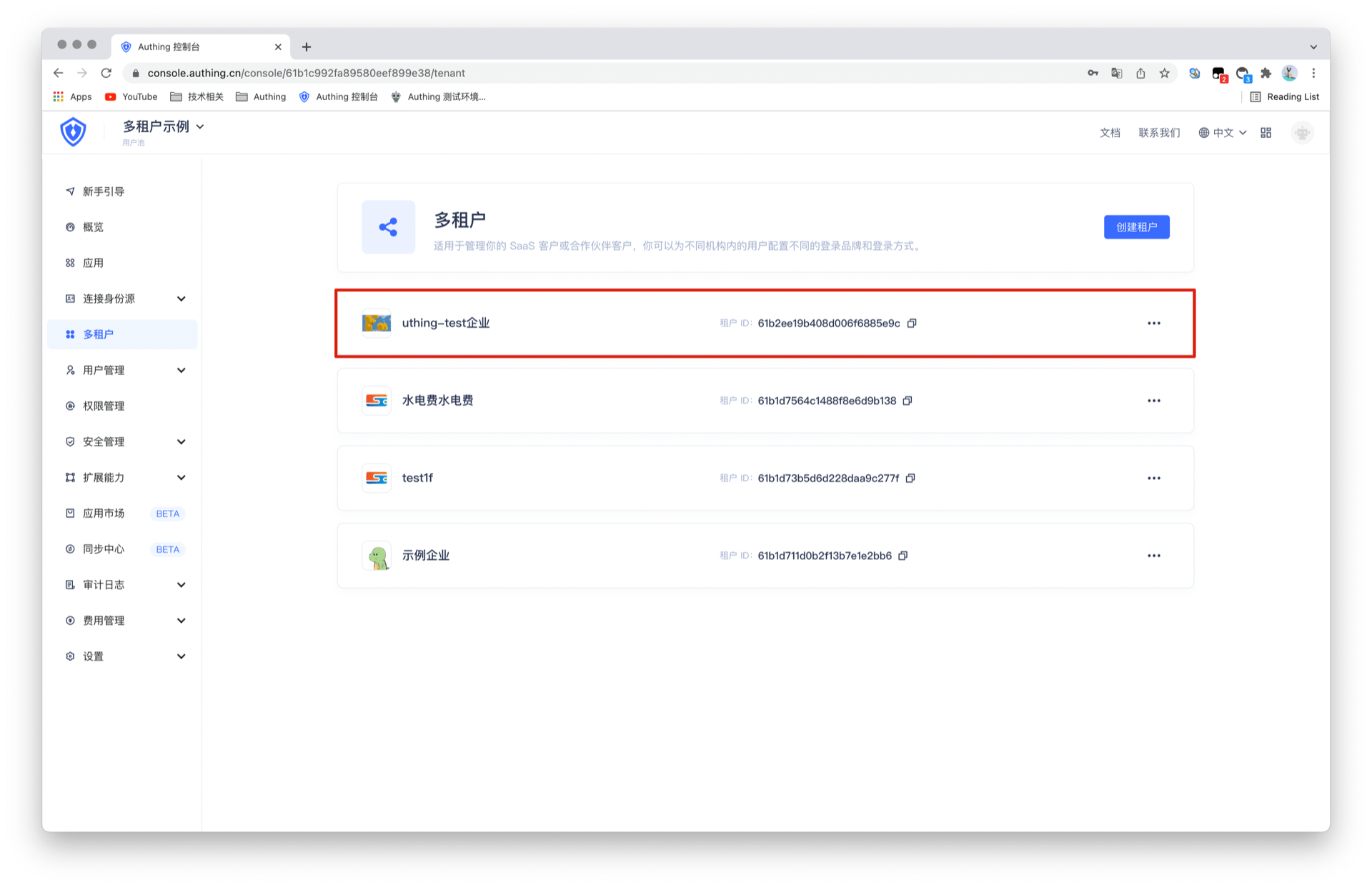 此时回到 Authing 控制台,查看租户列表,你创建的企业会在列表中展示。
