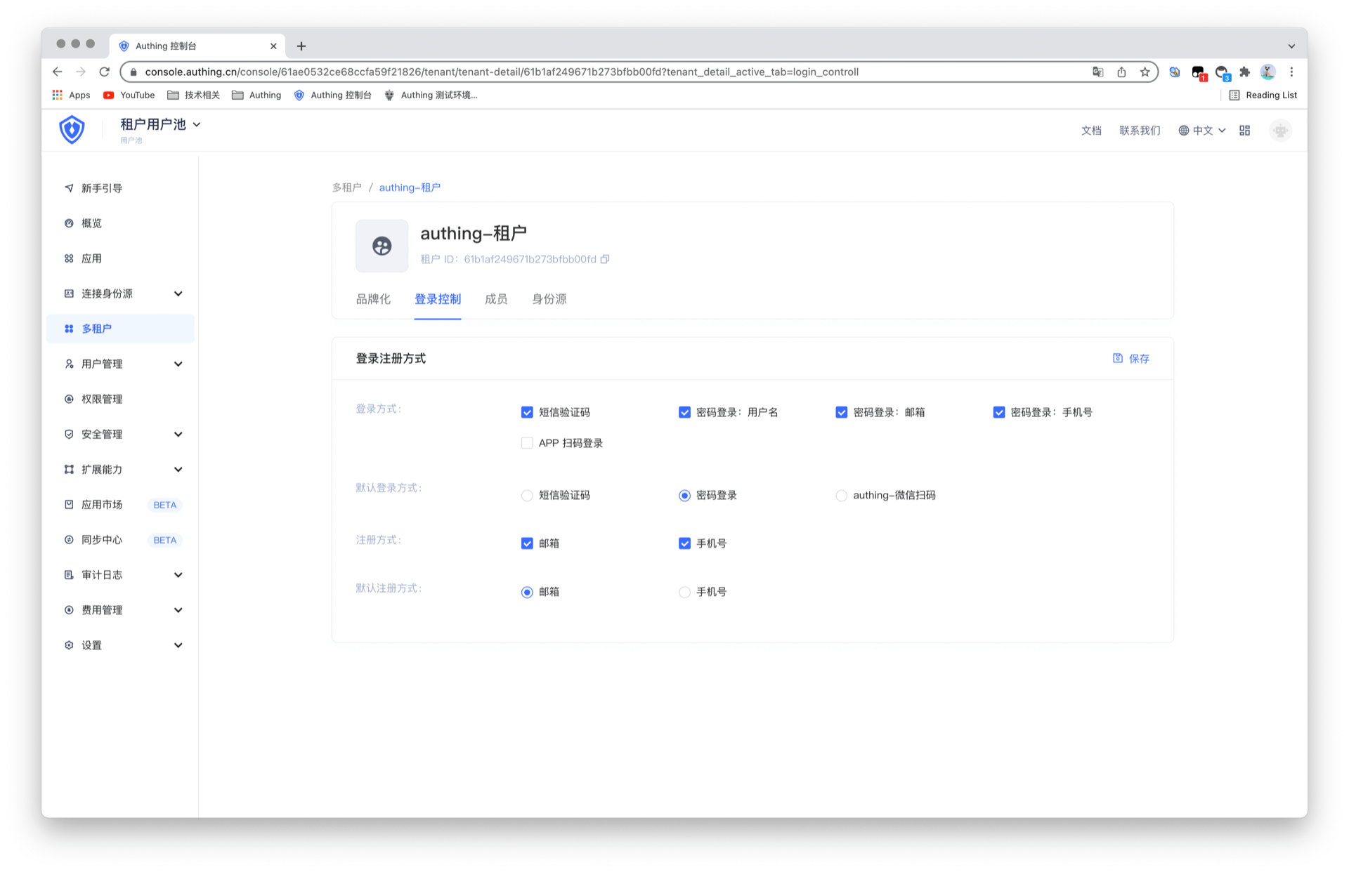 登录控制页面用于管理租户内用户的登录注册方式,你可以自定义配置所有的登录方式。