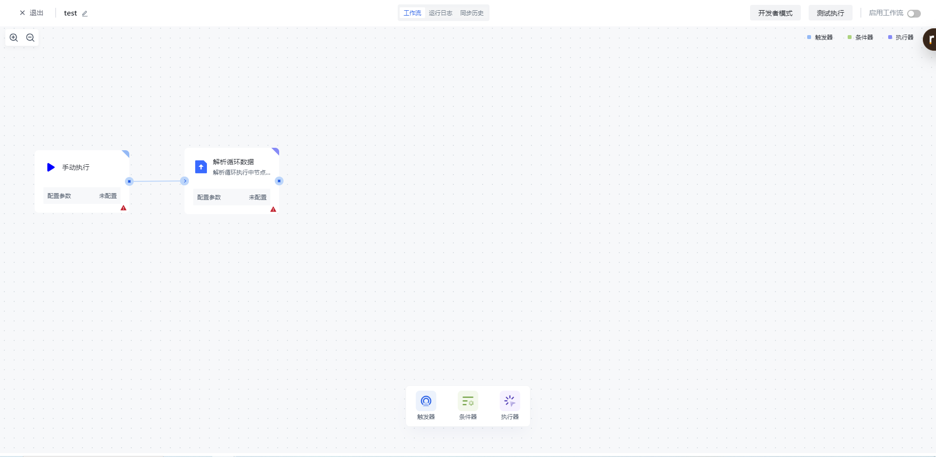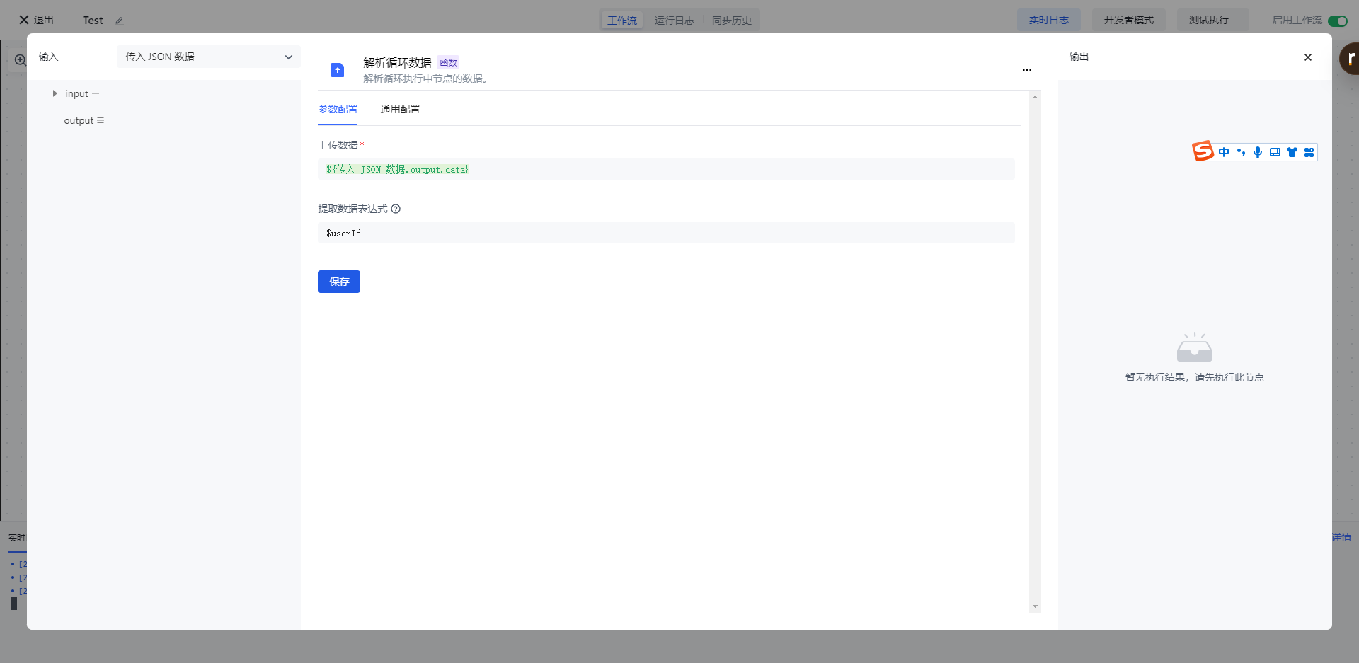 点击「运行日志」栏,依次点击最新的「执行批次」和「解析循环数据」节点左边的展开按钮,查看节点执行结果。
