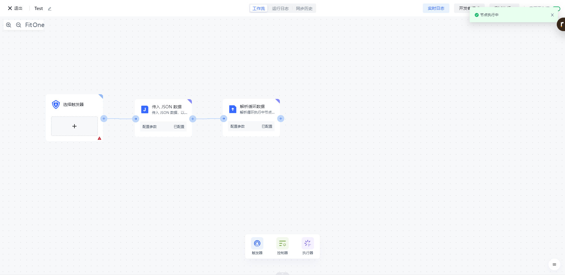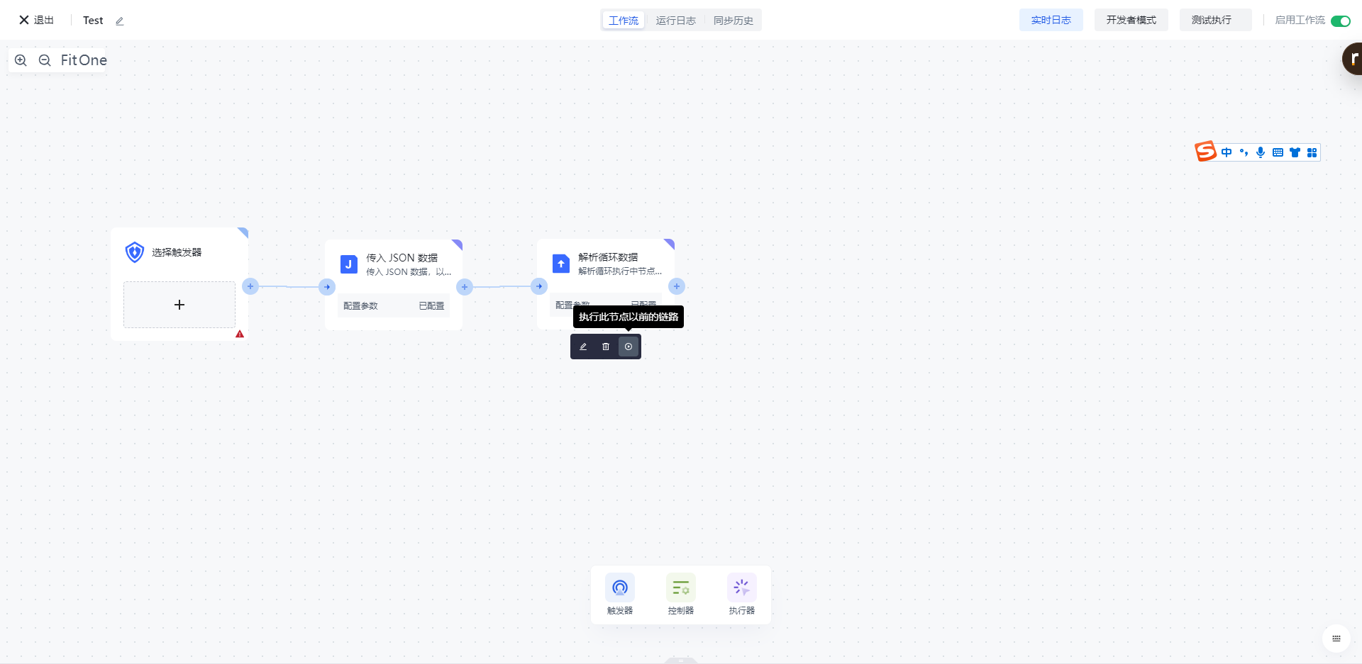 点击节点上的「执行此节点以前的链路」按钮,执行该节点。