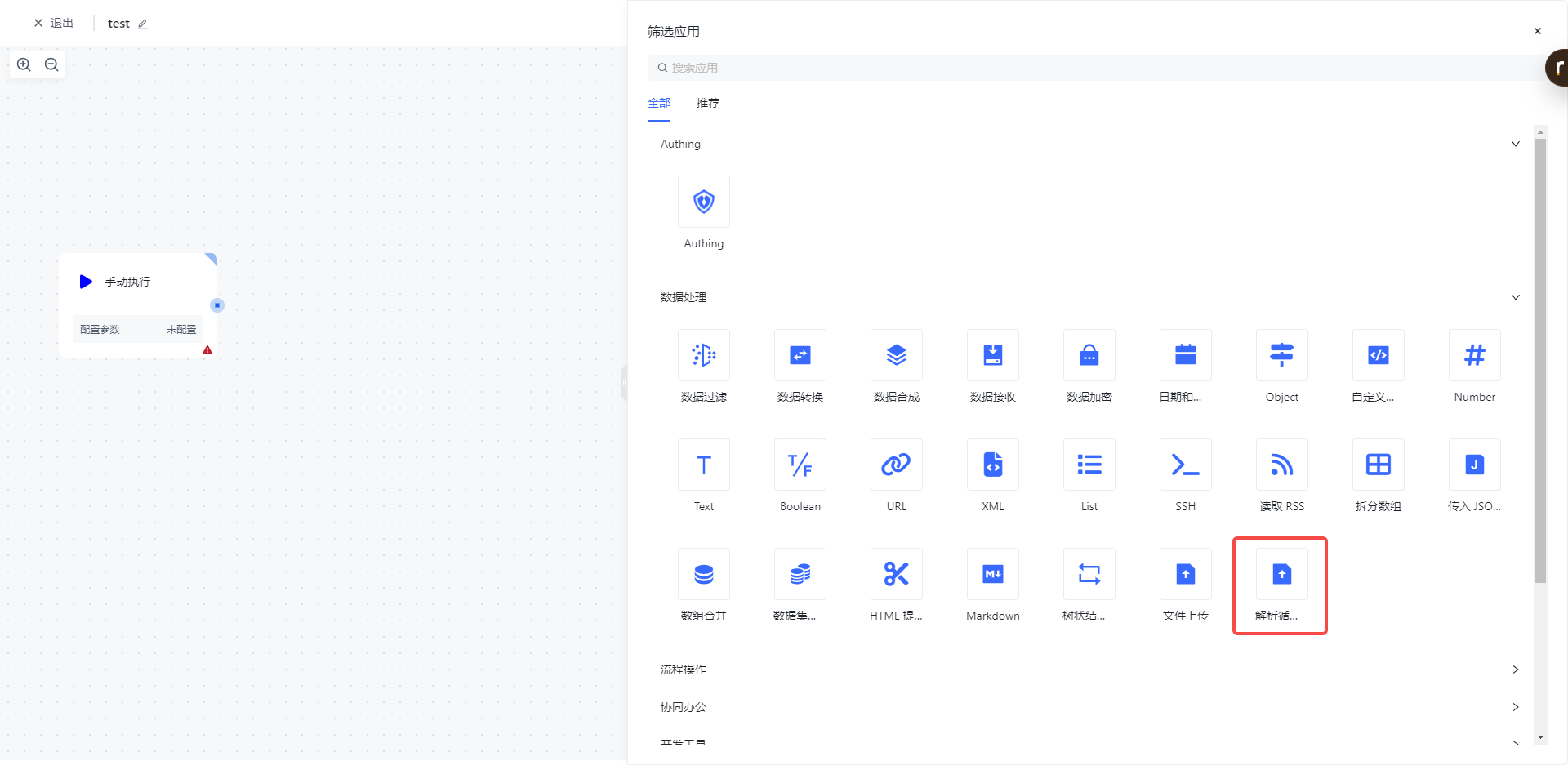 在添加节点页面,在「数据处理」分类中找到「解析循环数据」应用节点。