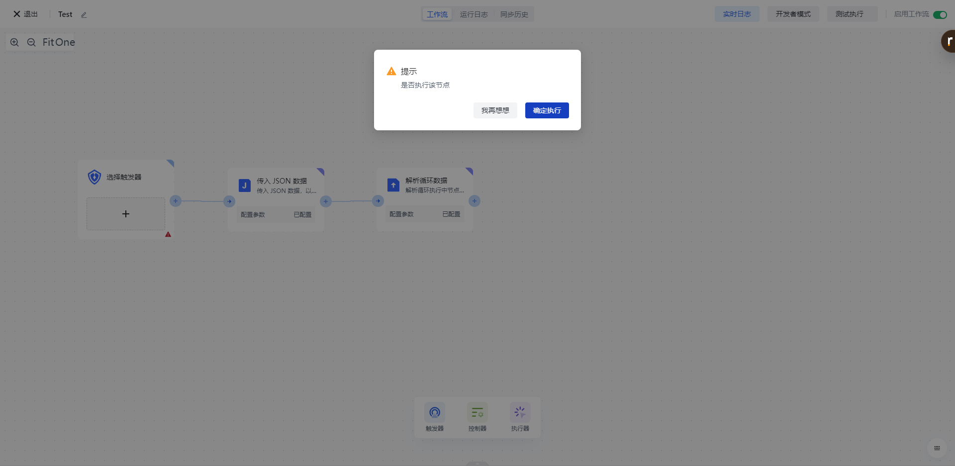 点击「确认执行」按钮之后,将会看到「节点执行中」的消息提示。