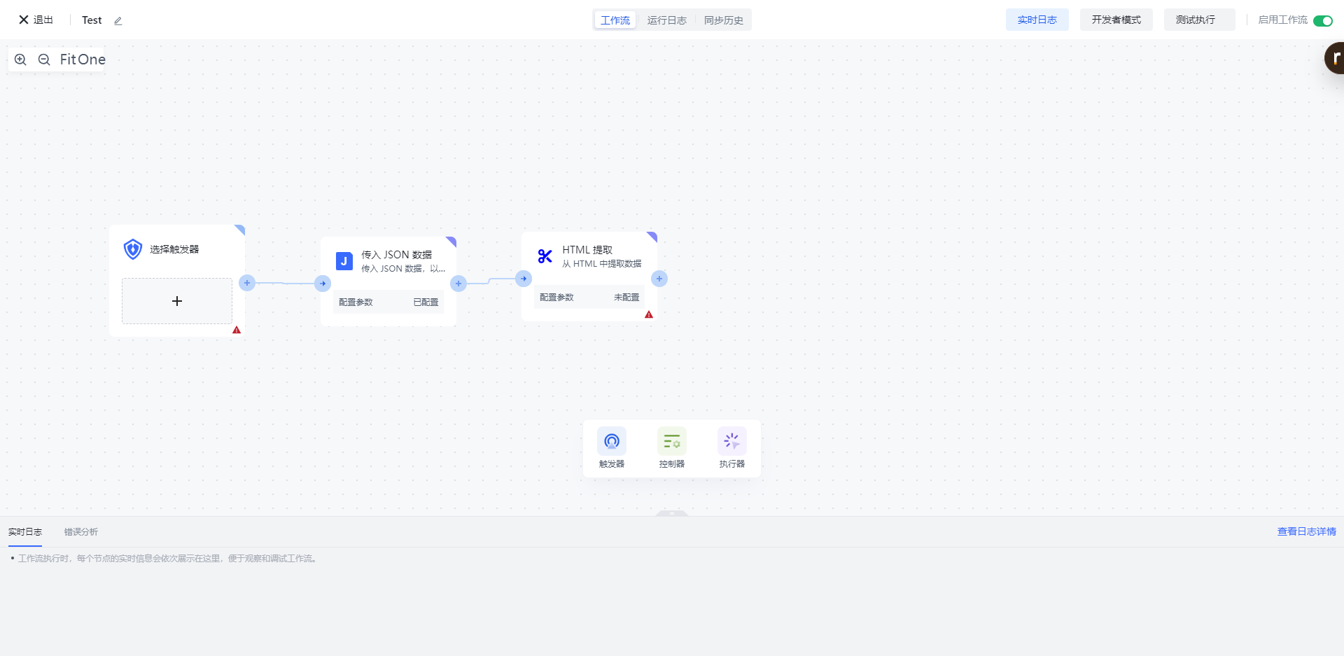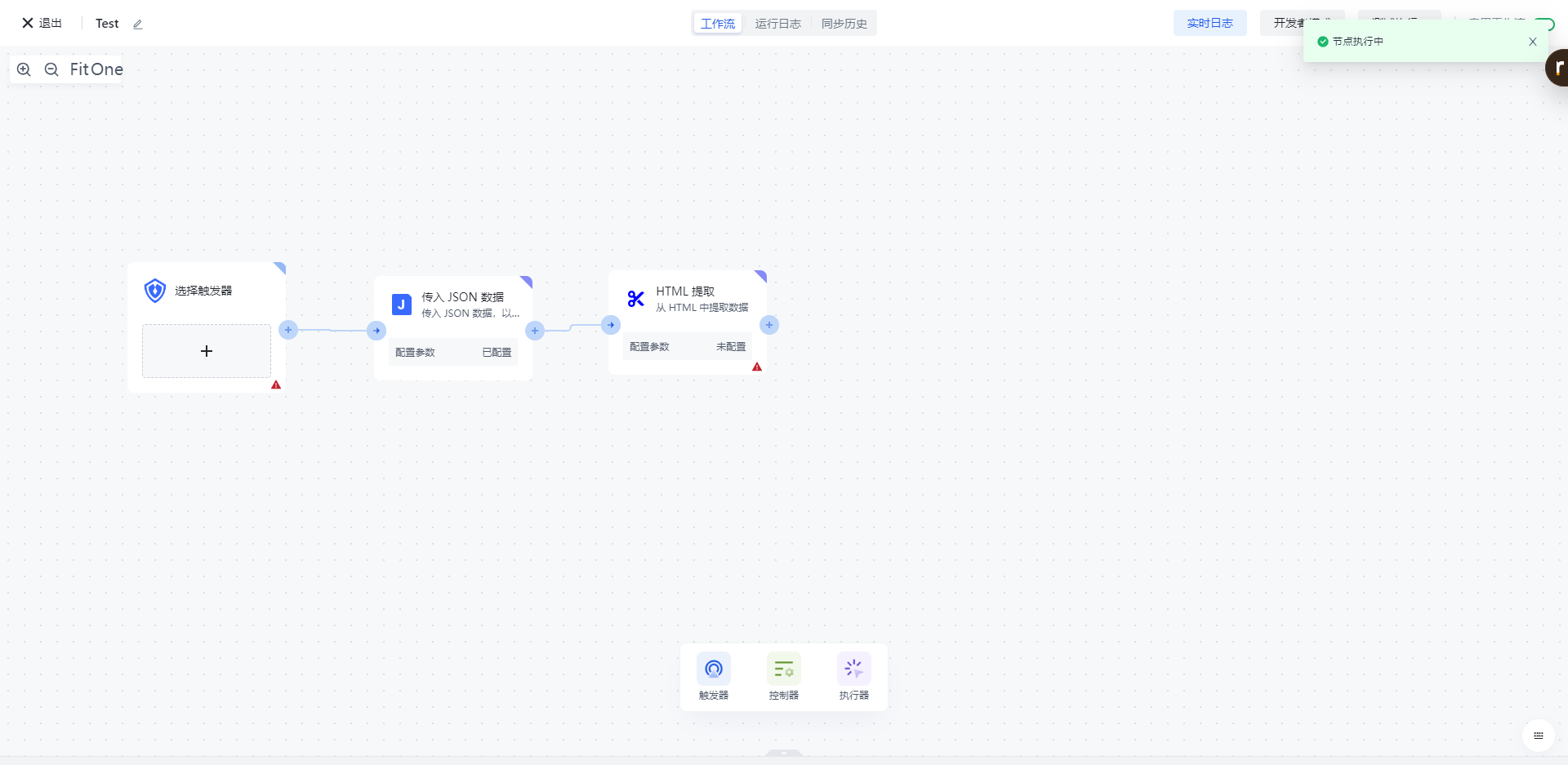 点击「运行日志」栏,依次点击最新的「执行批次」和「HTML 提取」节点左边的展开按钮,查看节点执行结果。