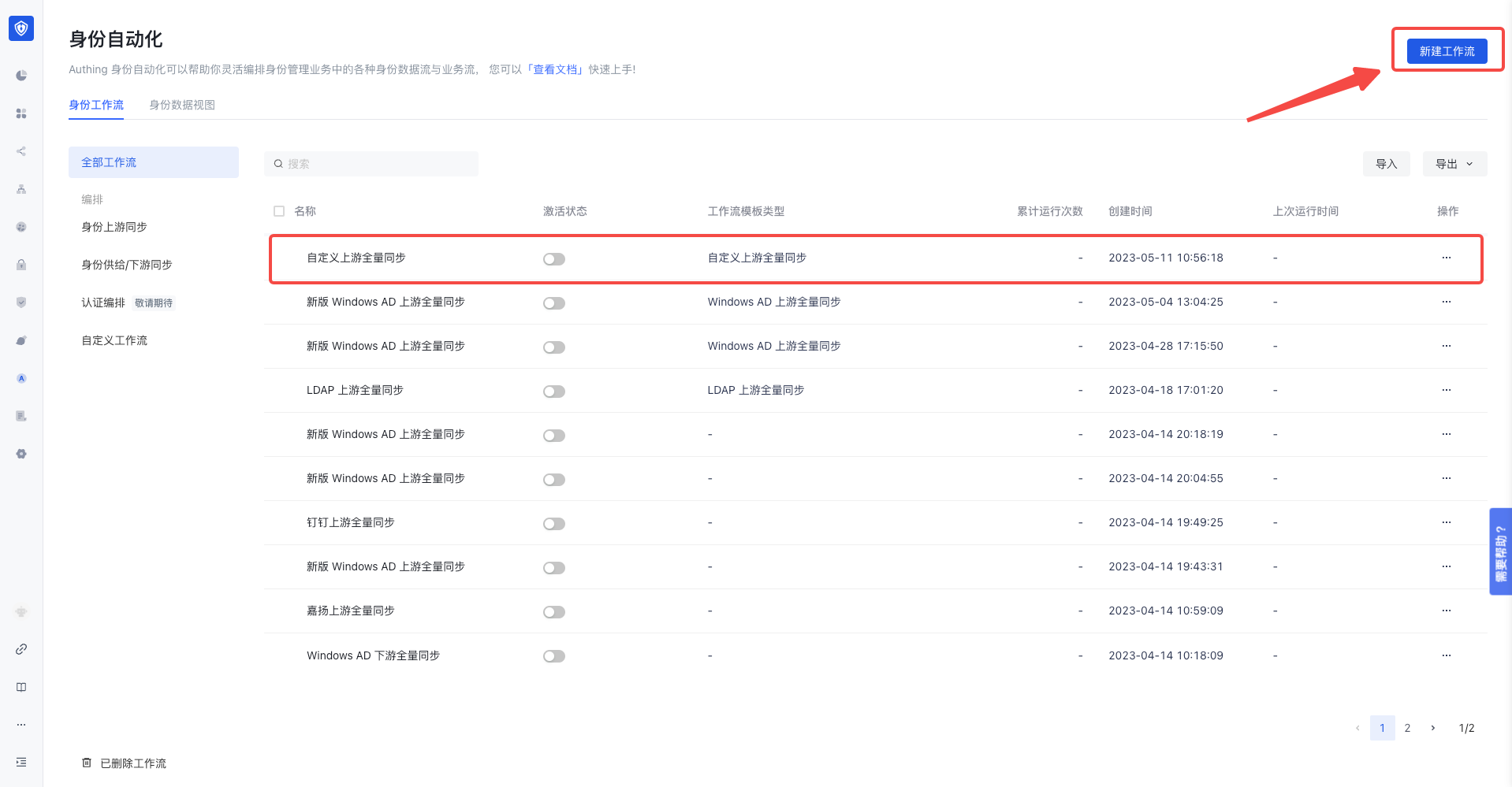 - 选择一个已有工作流或者创建一个新的工作流。