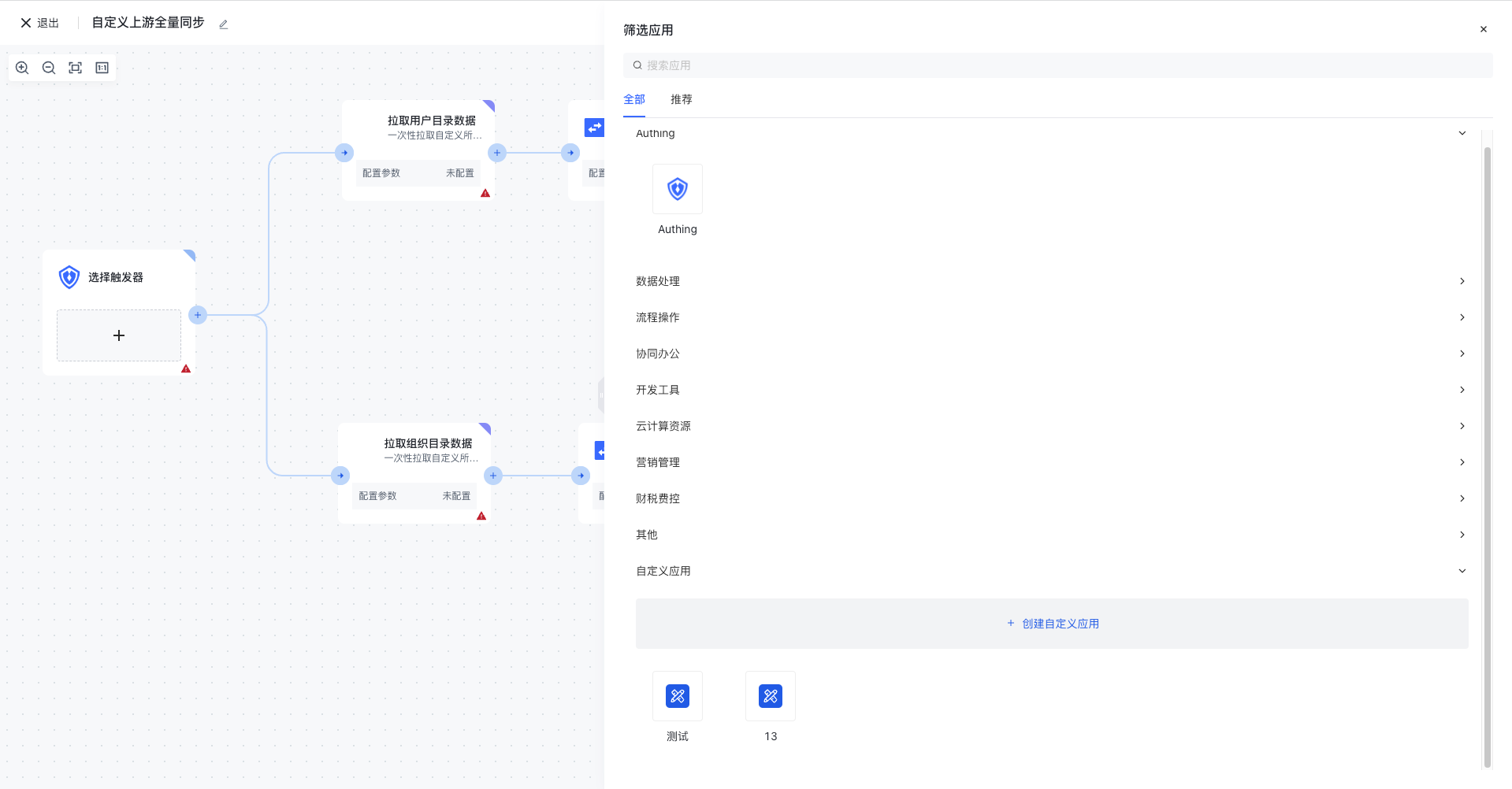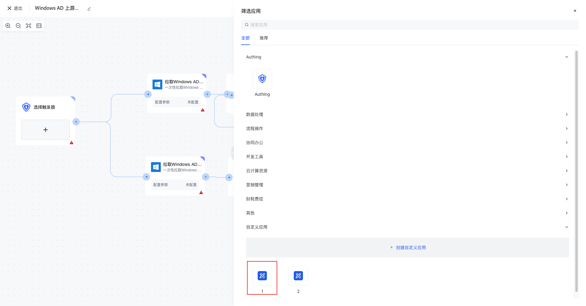 - 点击添加节点,在侧边栏点击创建「自定义应用」。