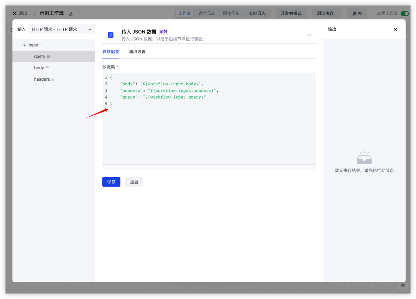 • 请求体:通过 ${workflow.input.body} 获取