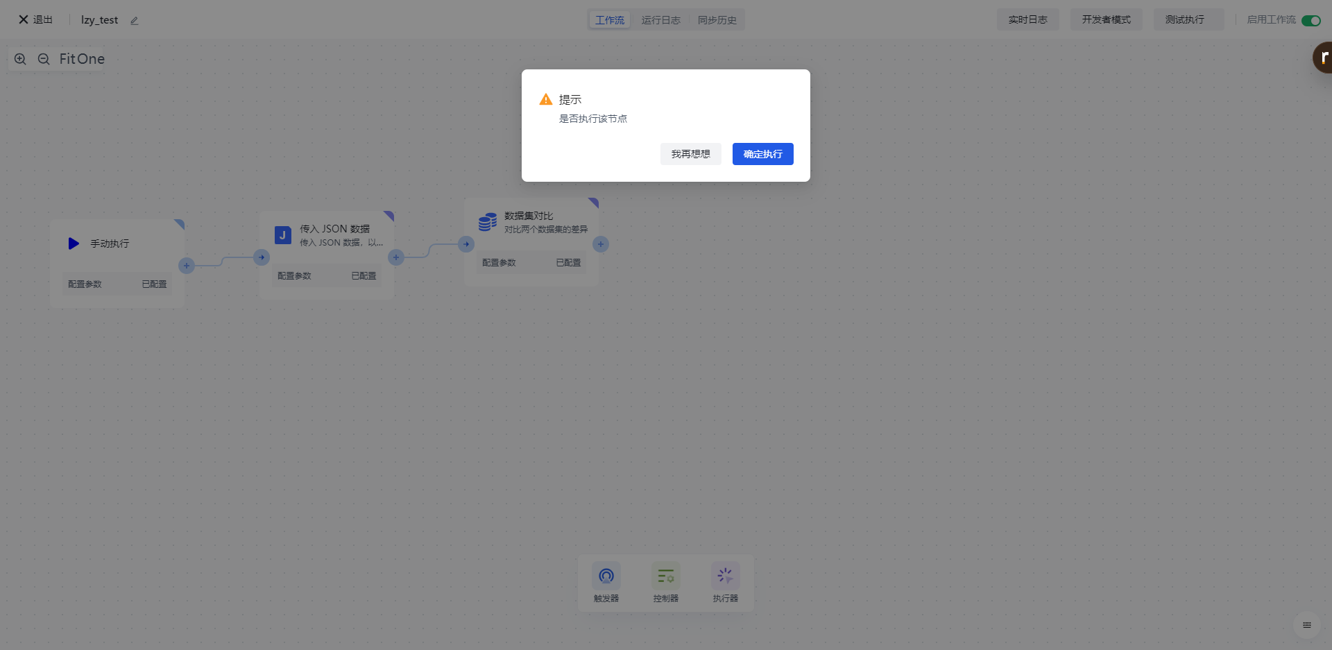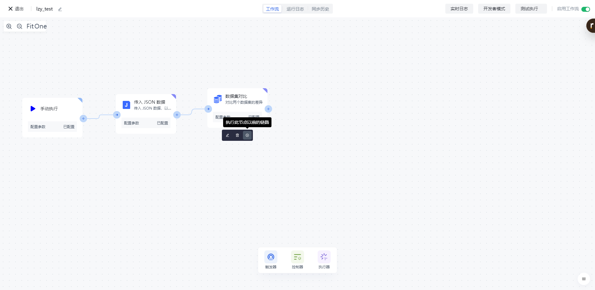 点击节点上的「执行此节点以前的链路」按钮,执行该节点。