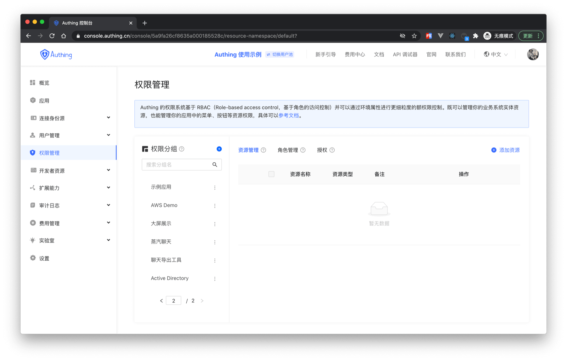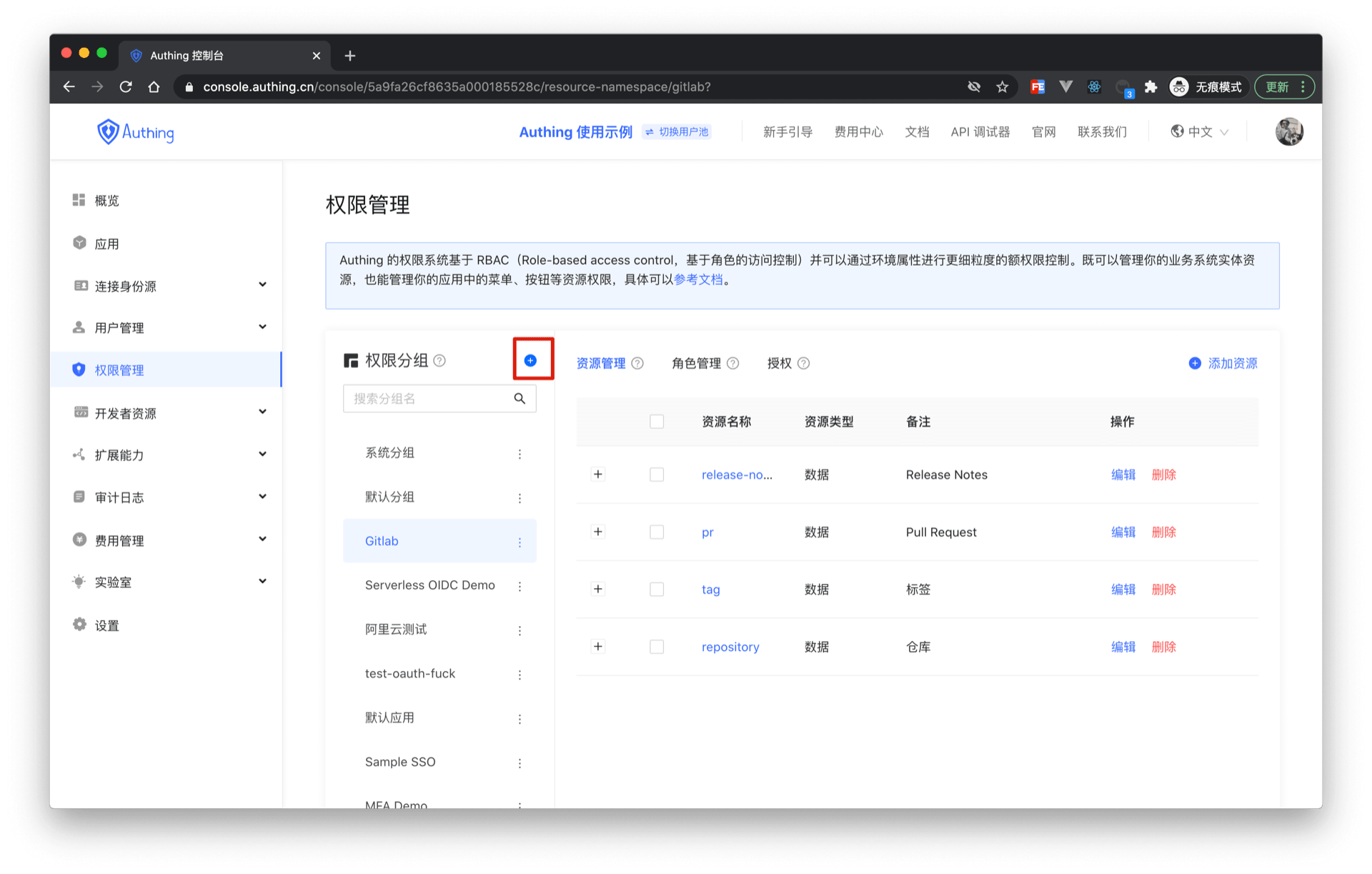 在创建的权限分组中就可以使用前面介绍的 ABAC 或 RBAC 权限模型对权限资源独立管理了。