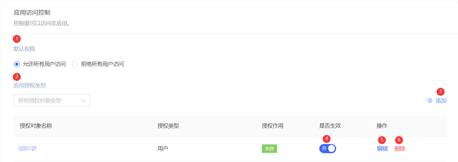 管理员可以在本模块指定能够访问当前应用的主体。
