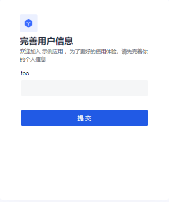 配置自定义字段之后,你可以开启应用的注册信息补全页面,让用户补全这些自定义字段的信息。