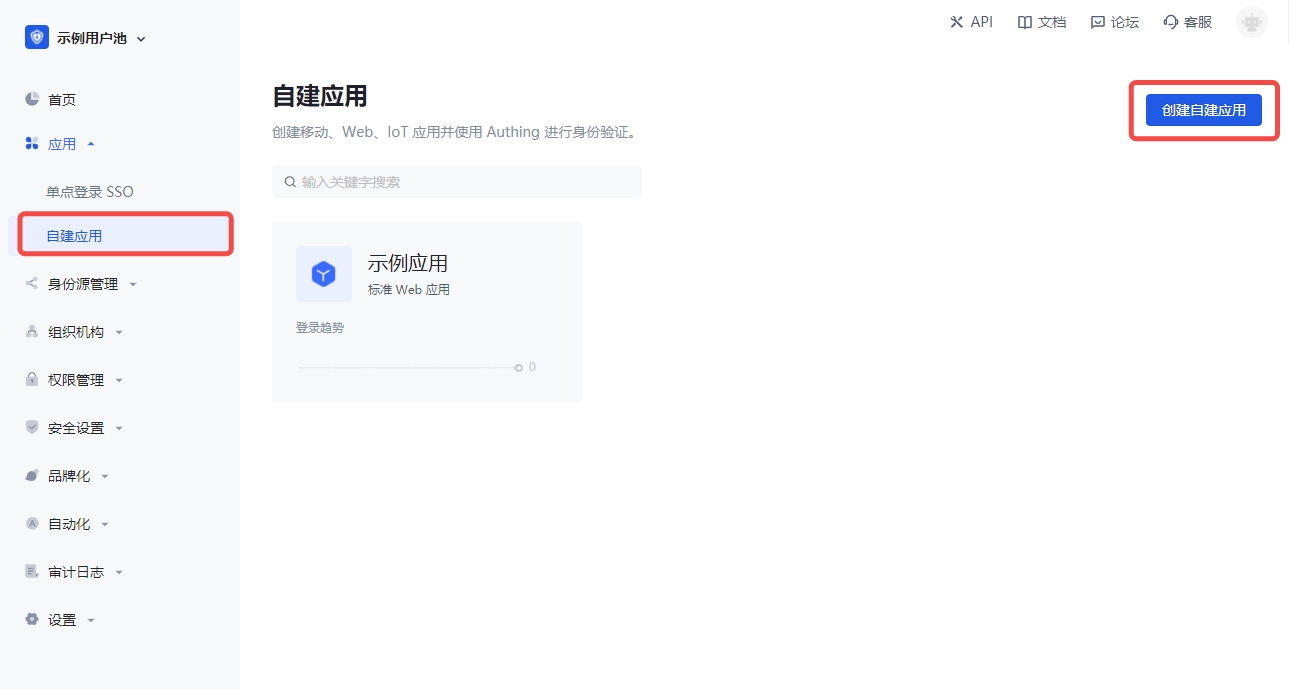 此应用和域名仅仅作为示例,你可以创建属于自己的 Authing 应用和域名。