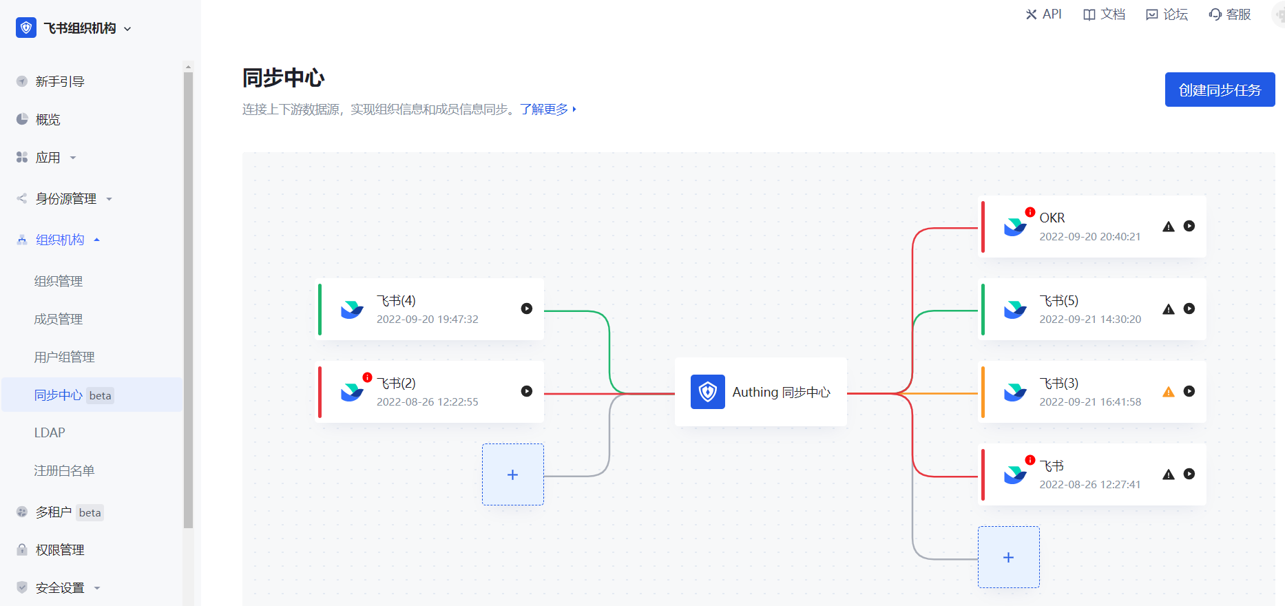 - 点击 Authing 同步中心 左侧加号为创建上游同步任务。