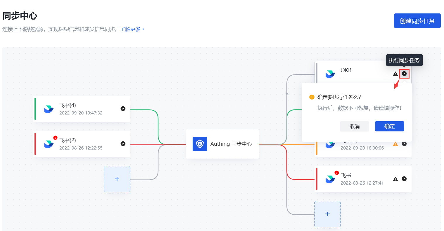 - 执行同步任务,数据不可恢复,要谨慎操作!
