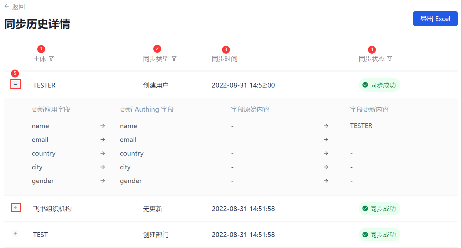 也可在 同步历史详情 页点击 导出 Excel 按钮。