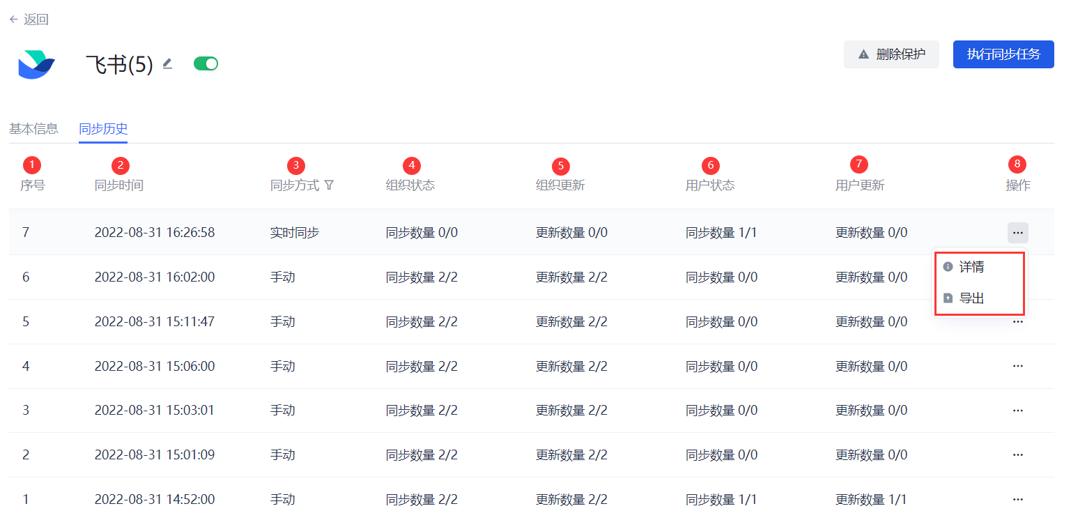 | 6 | 用户状态 | 统计此次执行同步任务,共有多少用户同步成功:同步成功数量/同步总数。 |