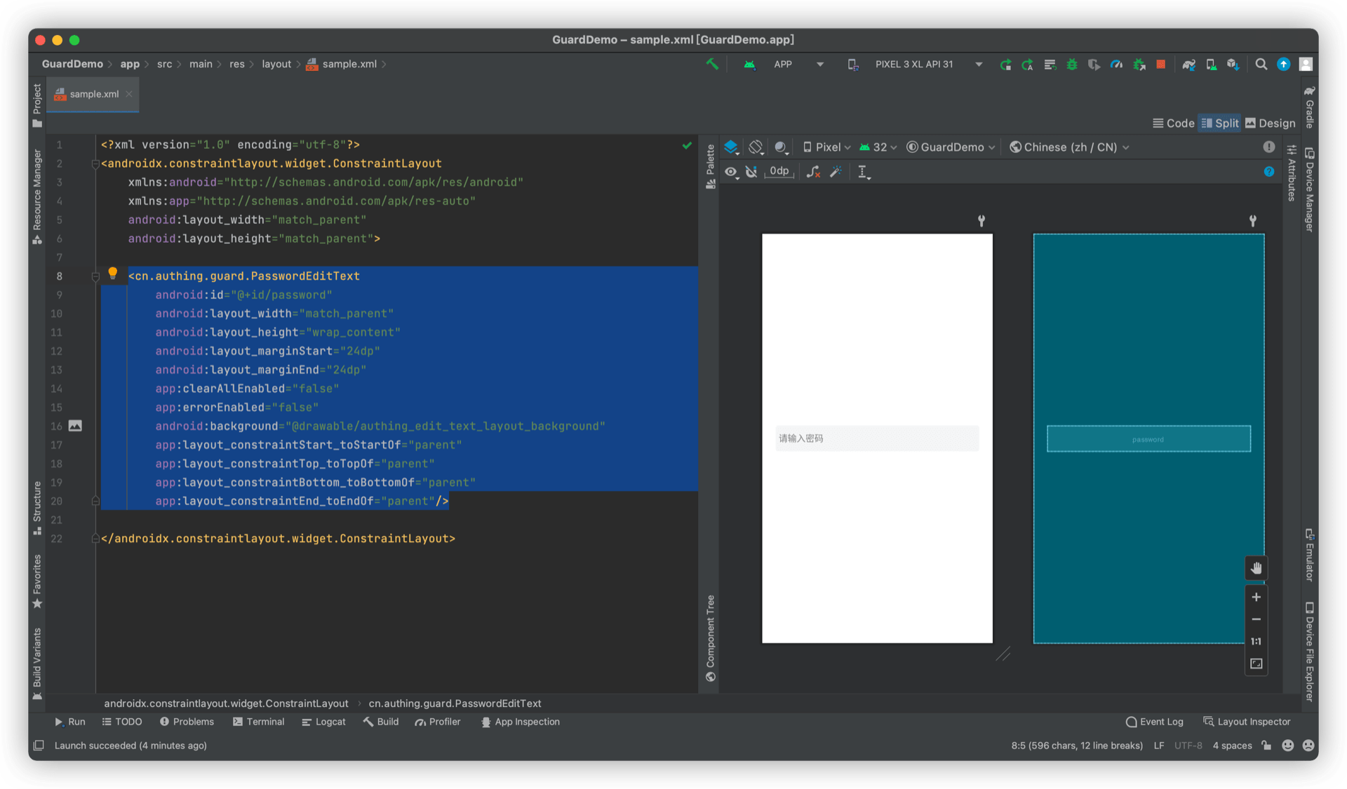 此组件将用户输入作为密码字段传给服务端。默认提供显示/隐藏密码按钮,errorEnabled 属性控制是否显示错误信息。