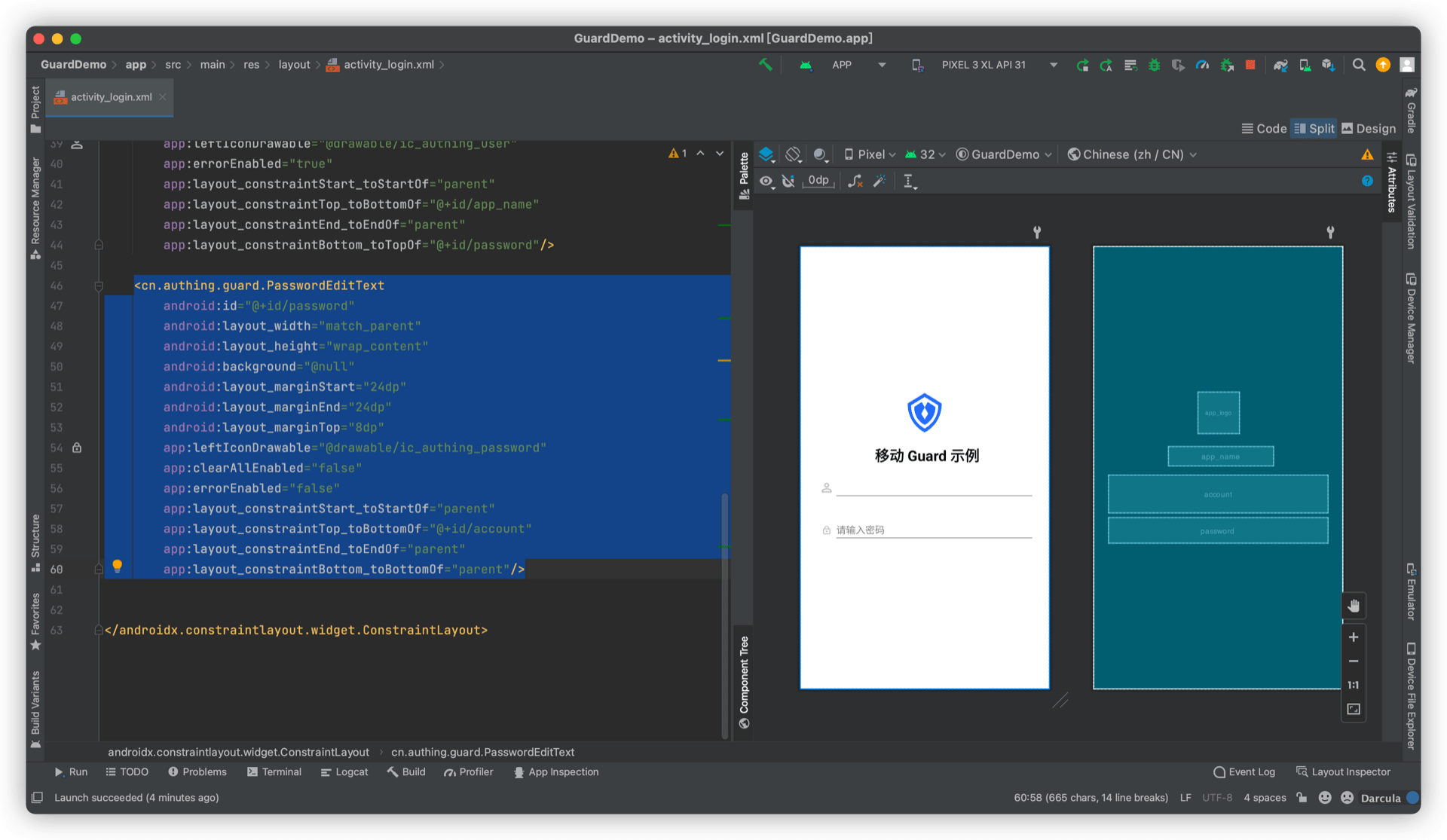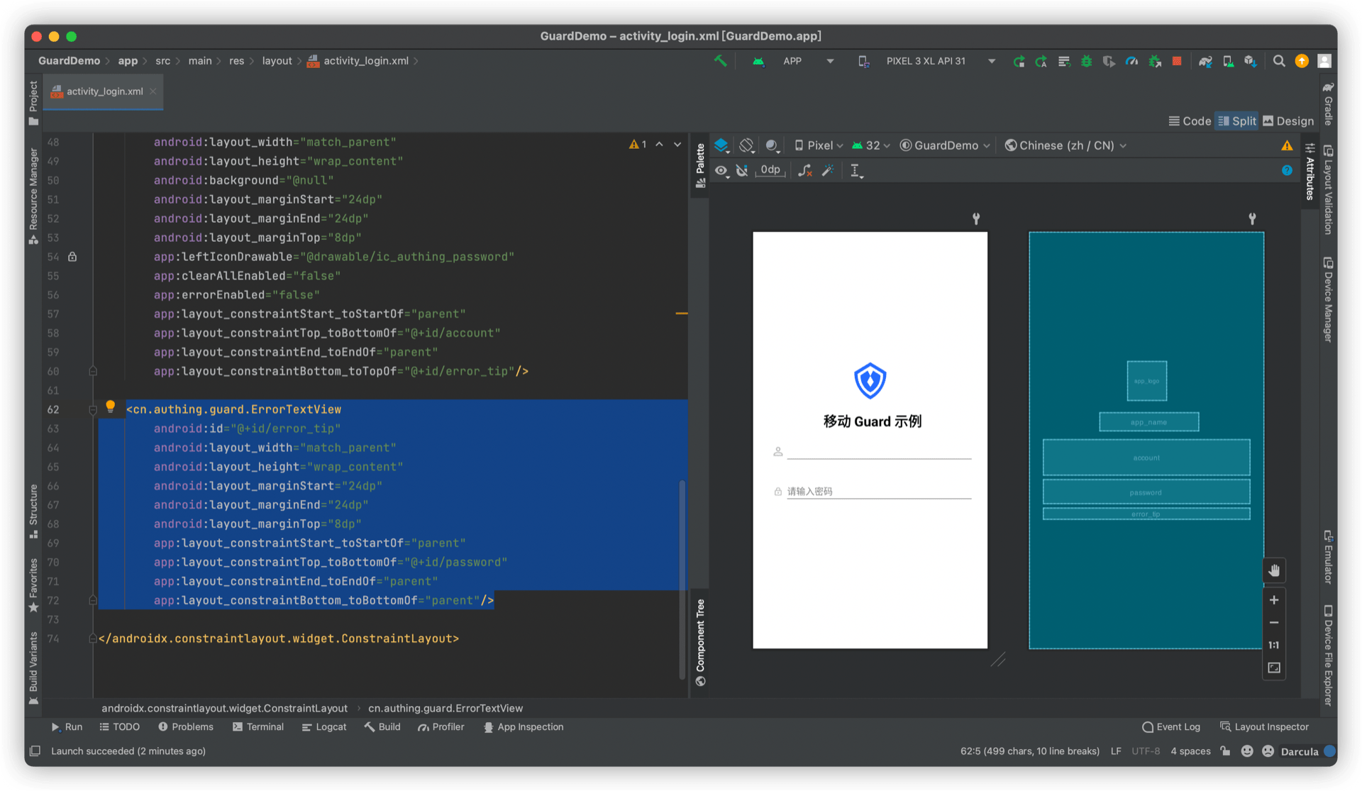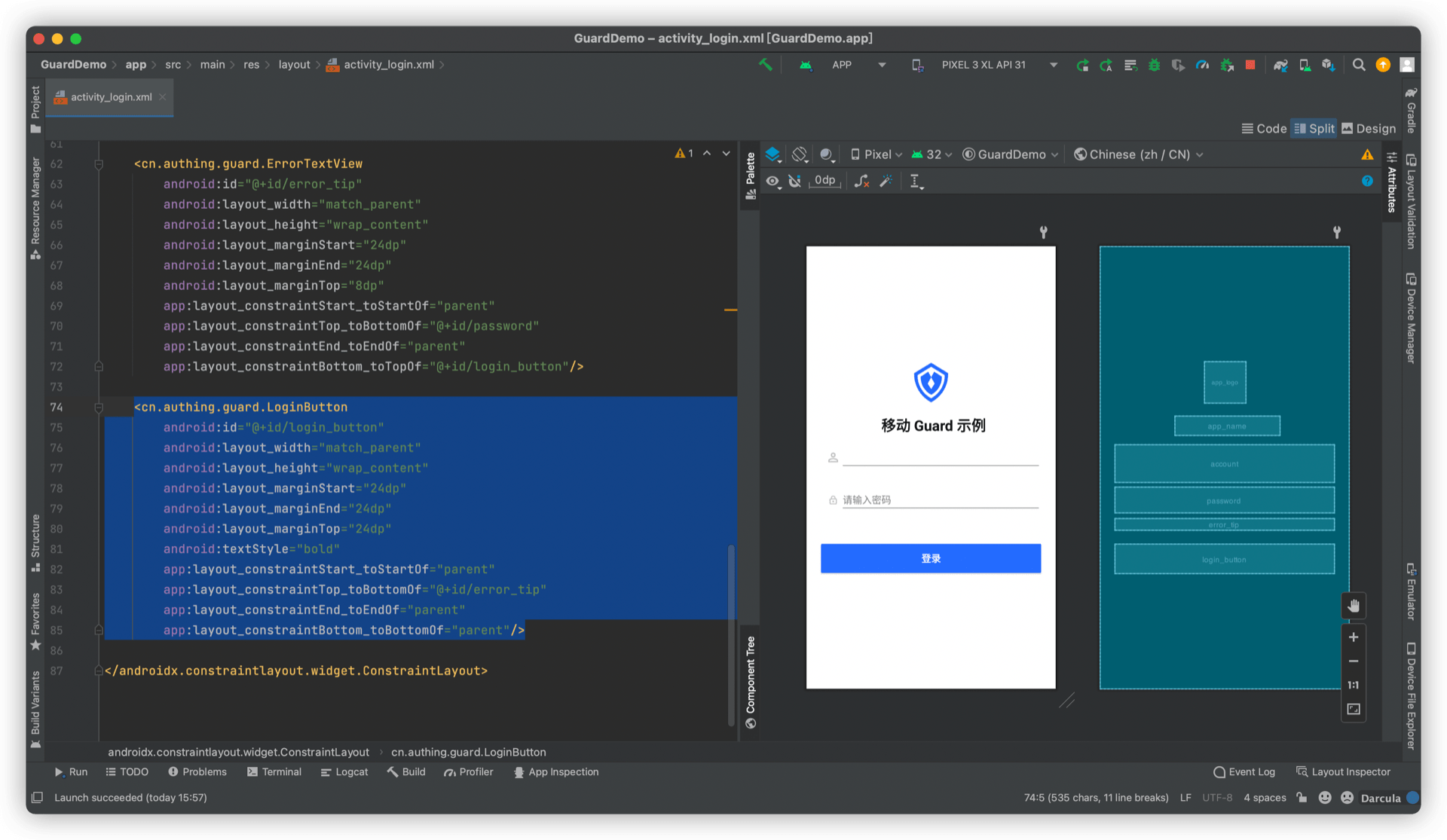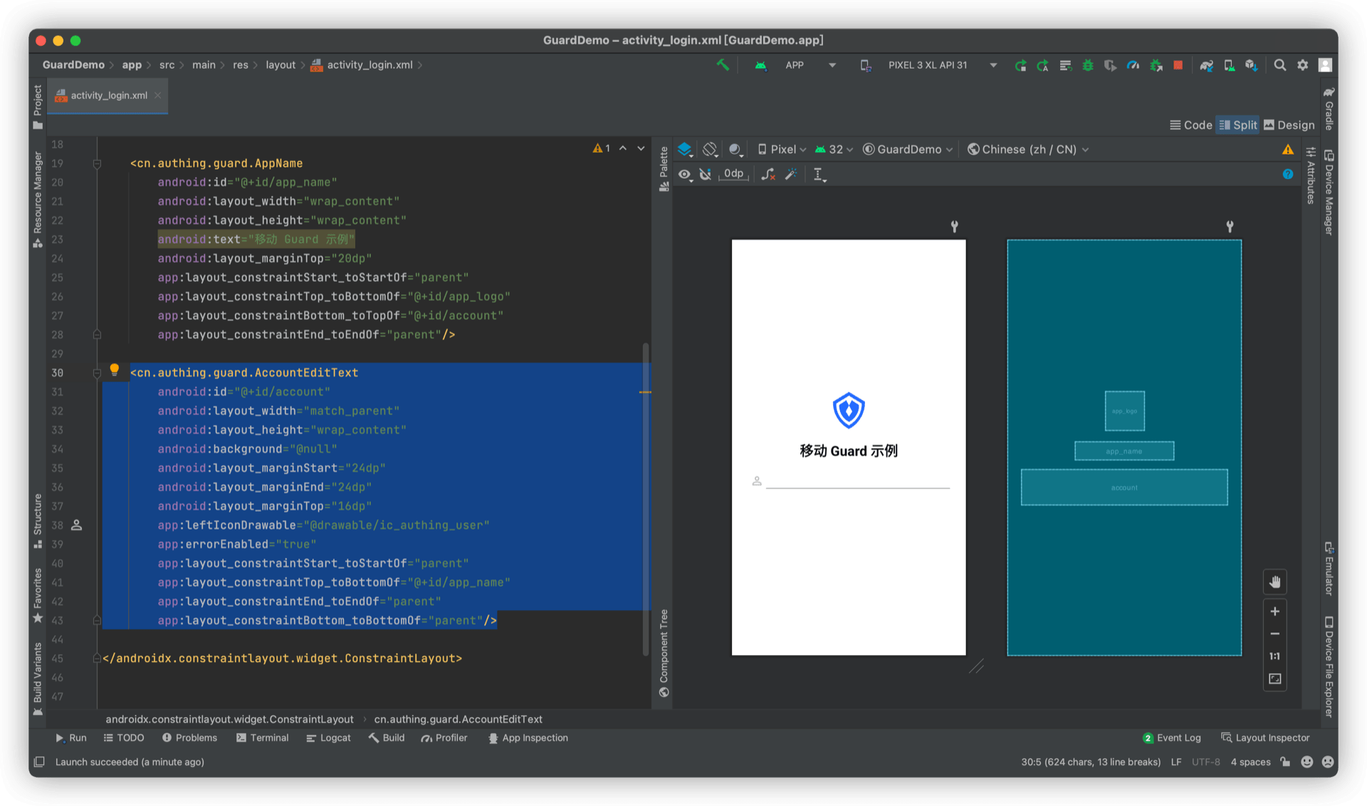 android:text="移动 Guard 示例"