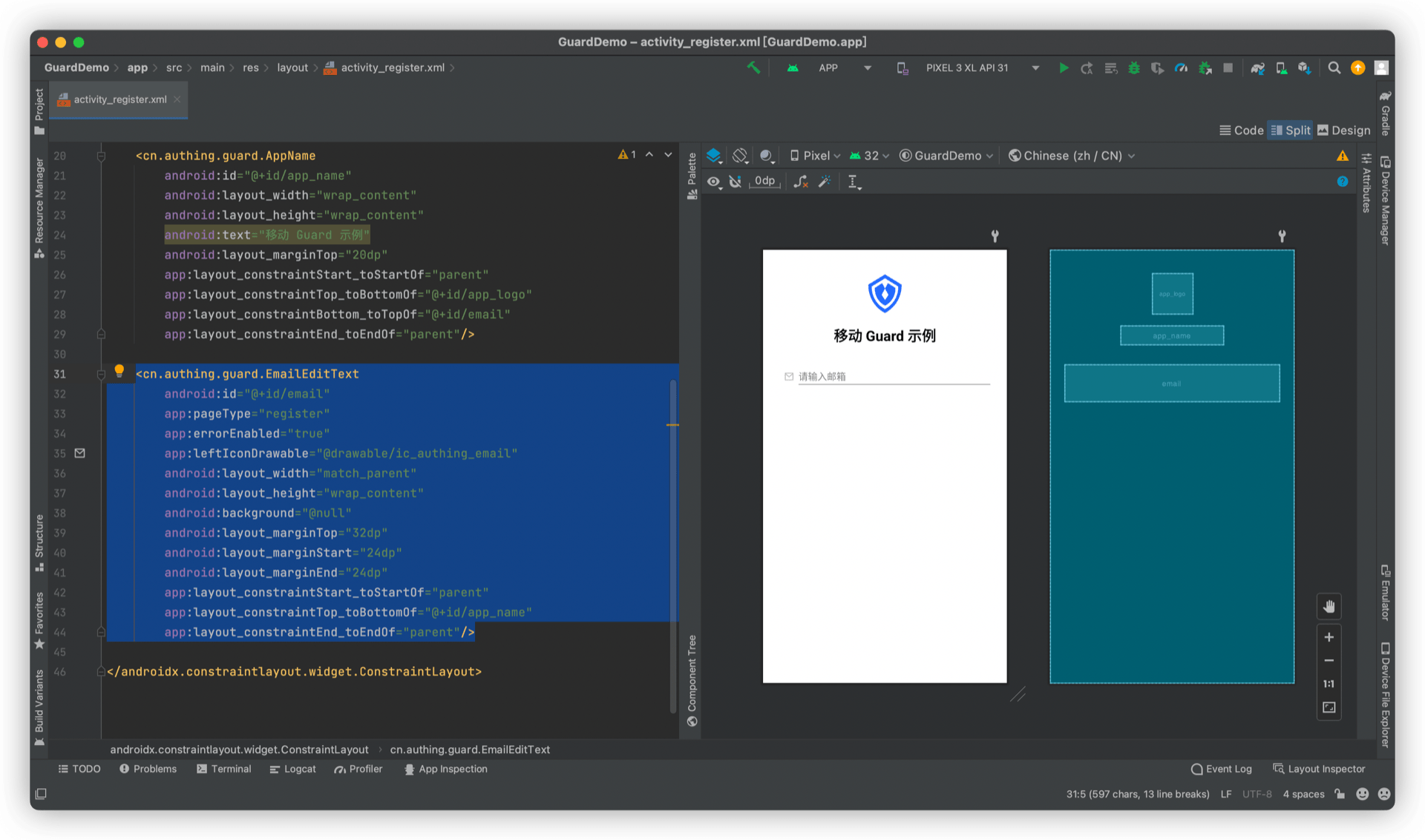 一个具有注册业务能力的界面就开发完了,输入有效的邮箱和密码,点击注册按钮就可以完成注册。如果注册出现错误,服务器返回的错误信息也能直接显示在 ErrorTextView 上。